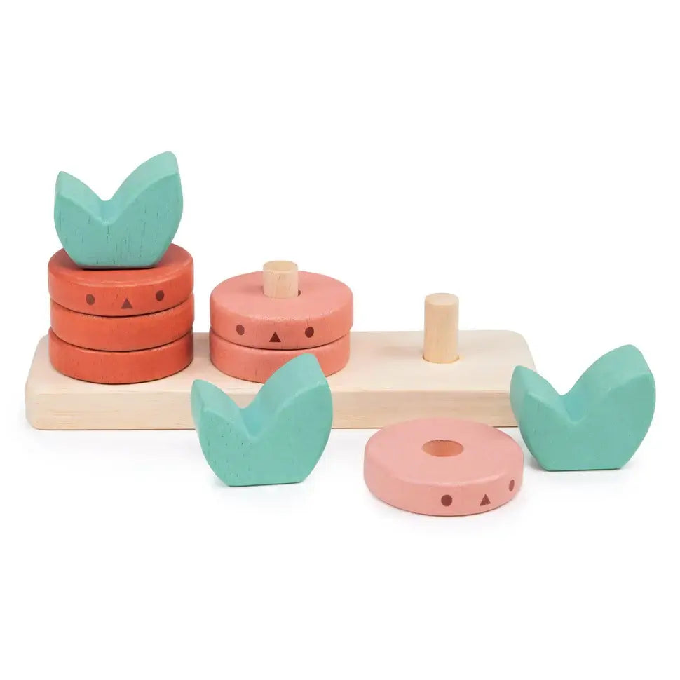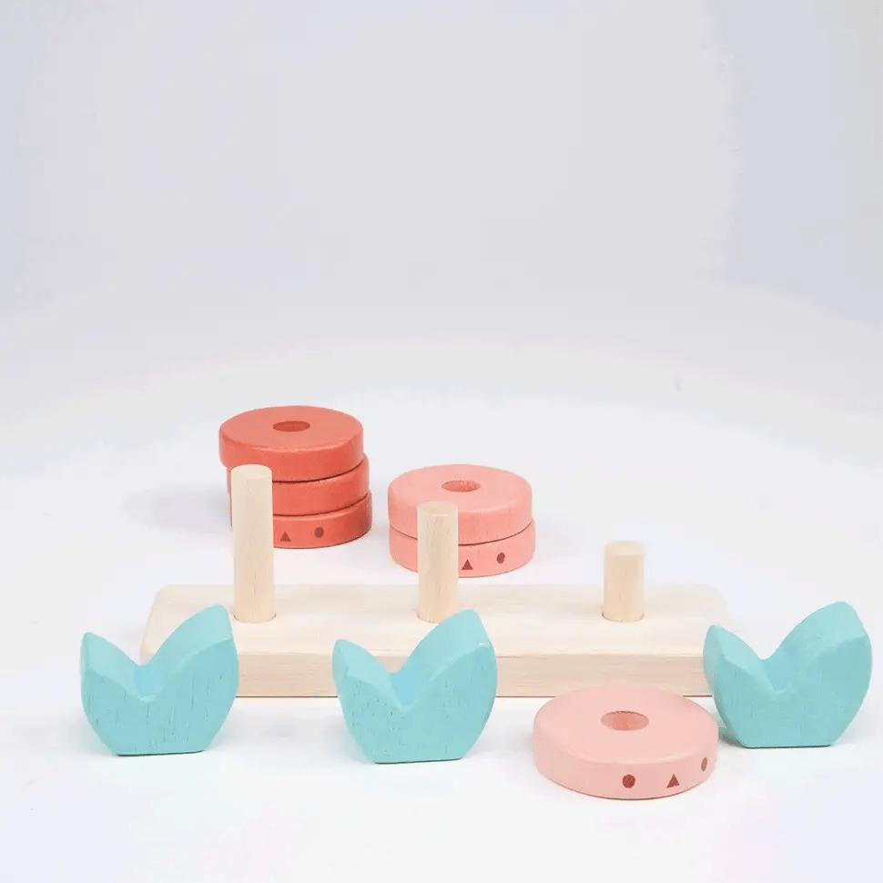 Counting has never been so much fun or eco-friendly! This set includes everything you need to learn numbers while playing. With a base, pegs, stacking disks, and leaf toppers, this toy will have you counting in no time. Get ready for a new level of learning play!