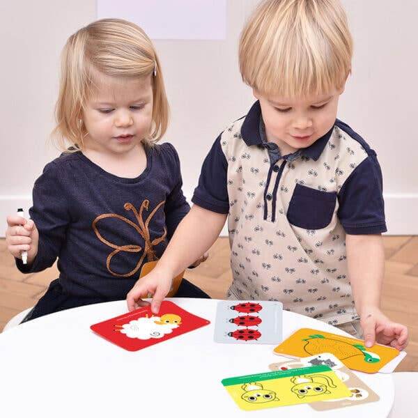 A range of double-sided activity cards for drawing and erasing that feature stimulating and engaging tasks.