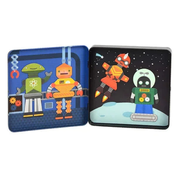 This Robot Remix On-the-Go Magnetic Play Set is the programmed for a great time! Create your own custom characters with over 25 magnetic pieces - mix and match. When its time to hit the road, the fun-filled tin easily packs up for your mobile playtime! Perfect for ages 3 and up, it's sure to keep your kiddo entertained with screen-free fun. So, kid-power up your playtime - it's time to get your robot remix on!